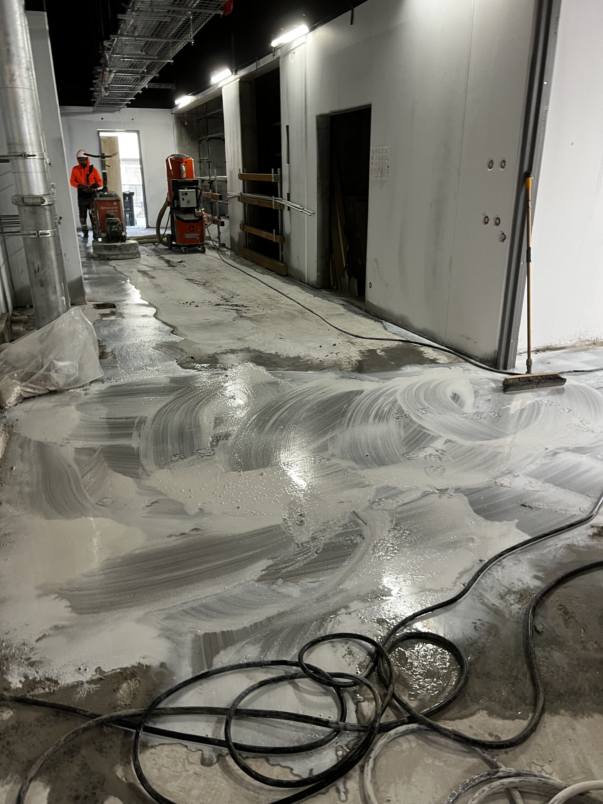 We use a specialised abrasive tool known as the diamond grinding wheel. It is used to grind, smoothen and polish the concrete floors evenly. The process of grinding begins with preparing the surface first to achieve a smooth finish.