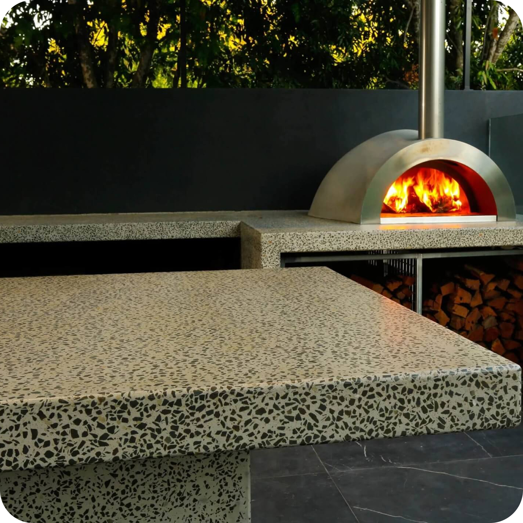 With a beautiful, shiny, polished concrete benchtop, you can create a unique seating area for your kitchen or dining room. Whether you are looking for a country, contemporary, or modern feel, the wide variety of available materials, designs, finishes, and colors of concrete benches mean you will get a one of a kind benchtop, that both looks high end yet is extremely economical.